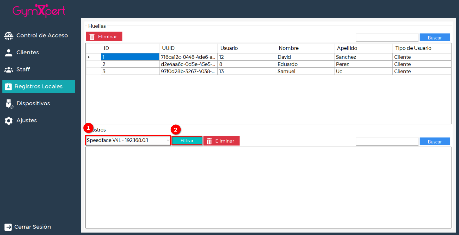 Una vez instalado y configurado GymXpert Access Control, podrás utilizar sus diferentes secciones para gestionar huellas, clientes y dispositivos de acceso. A continuación, te explicamos cada una de ellas.