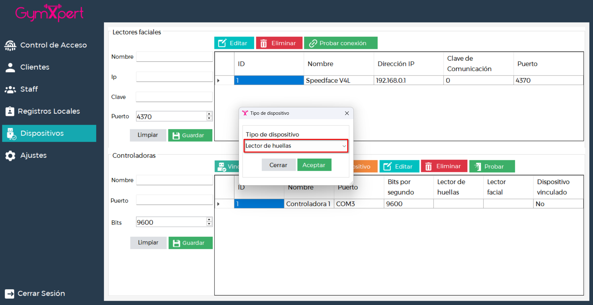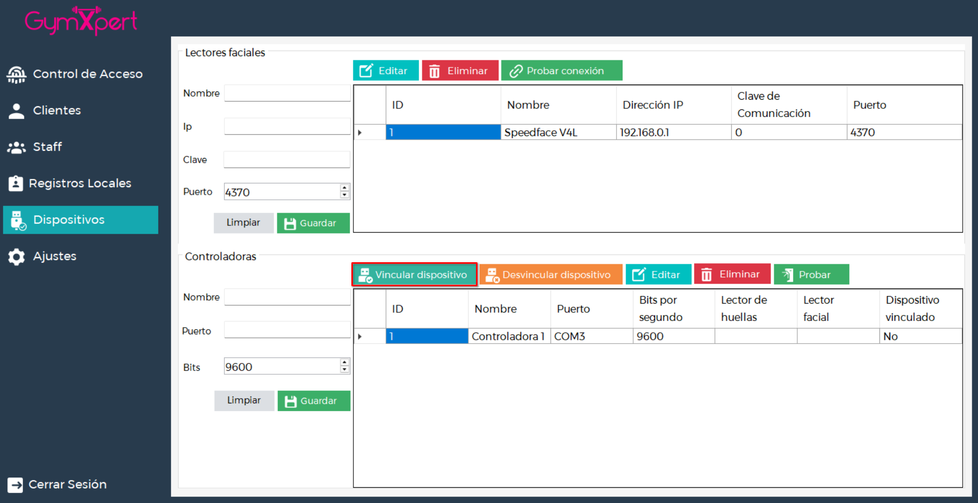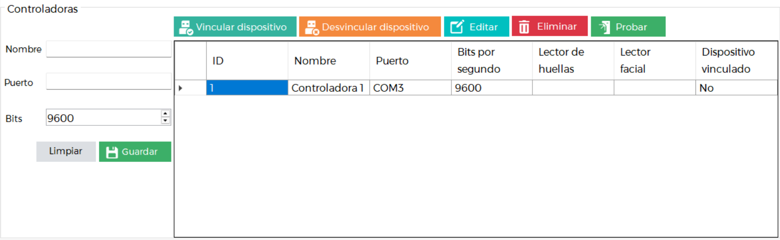 Es fundamental vincular los dispositivos a una controladora para que, al momento de un acceso, el sistema pueda identificar correctamente desde qué medio está ingresando el usuario (lector facial, teclado, lector de QR o lector de huellas).