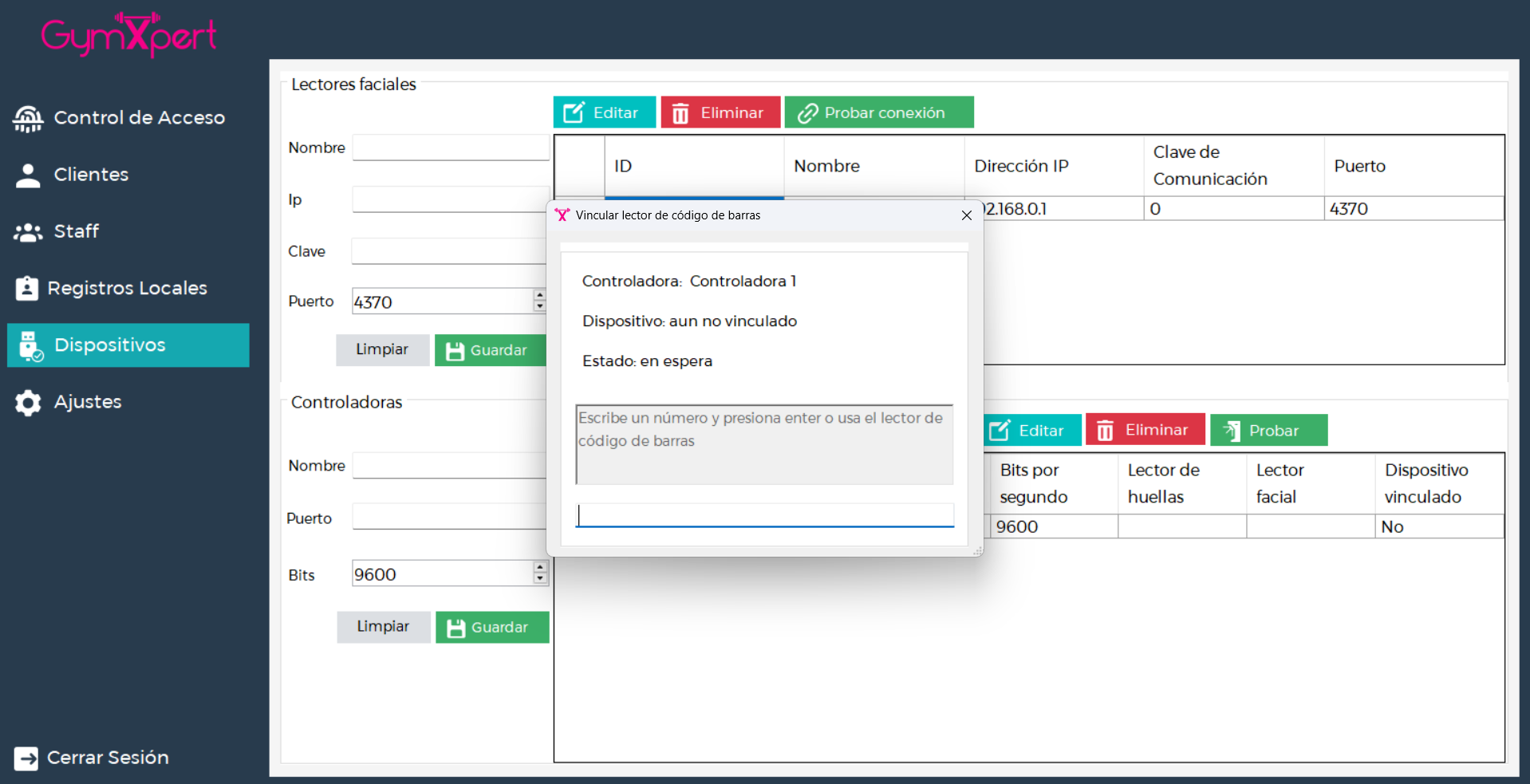 Para asociar el lector de lector de código de barras/QR o teclado al torniquete, siga las siguientes instrucciones desde GymXpert Access Control: