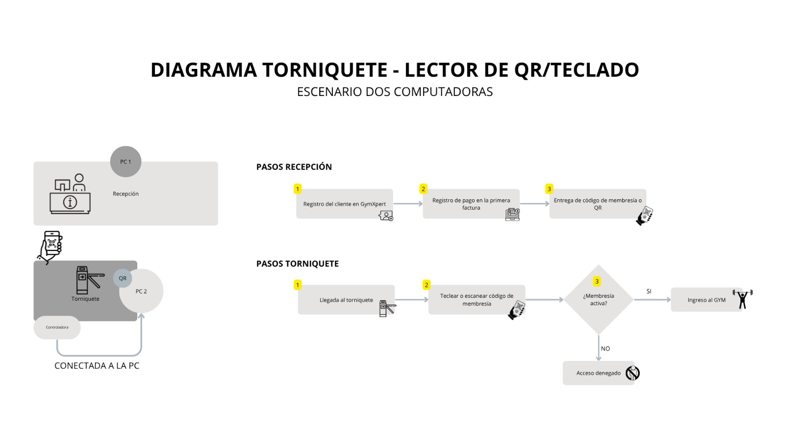 Para usar un lector de códigos de barras/QR o un teclado para el acceso por código de membresía, asegúrese de seguir los pasos que se indican a continuación.