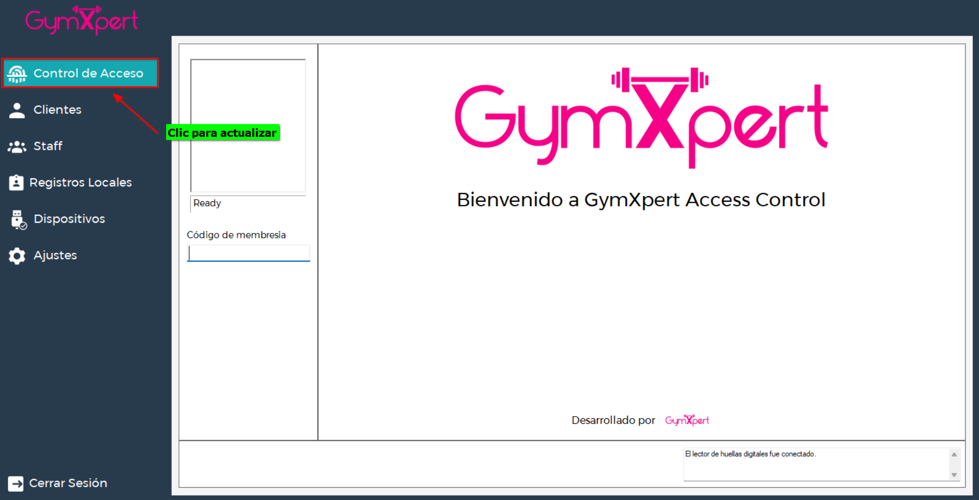Para que se registren correctamente las asistencias de los clientes, es necesario que en GymXpert.net se mantenga abierta la vista Asistencias.