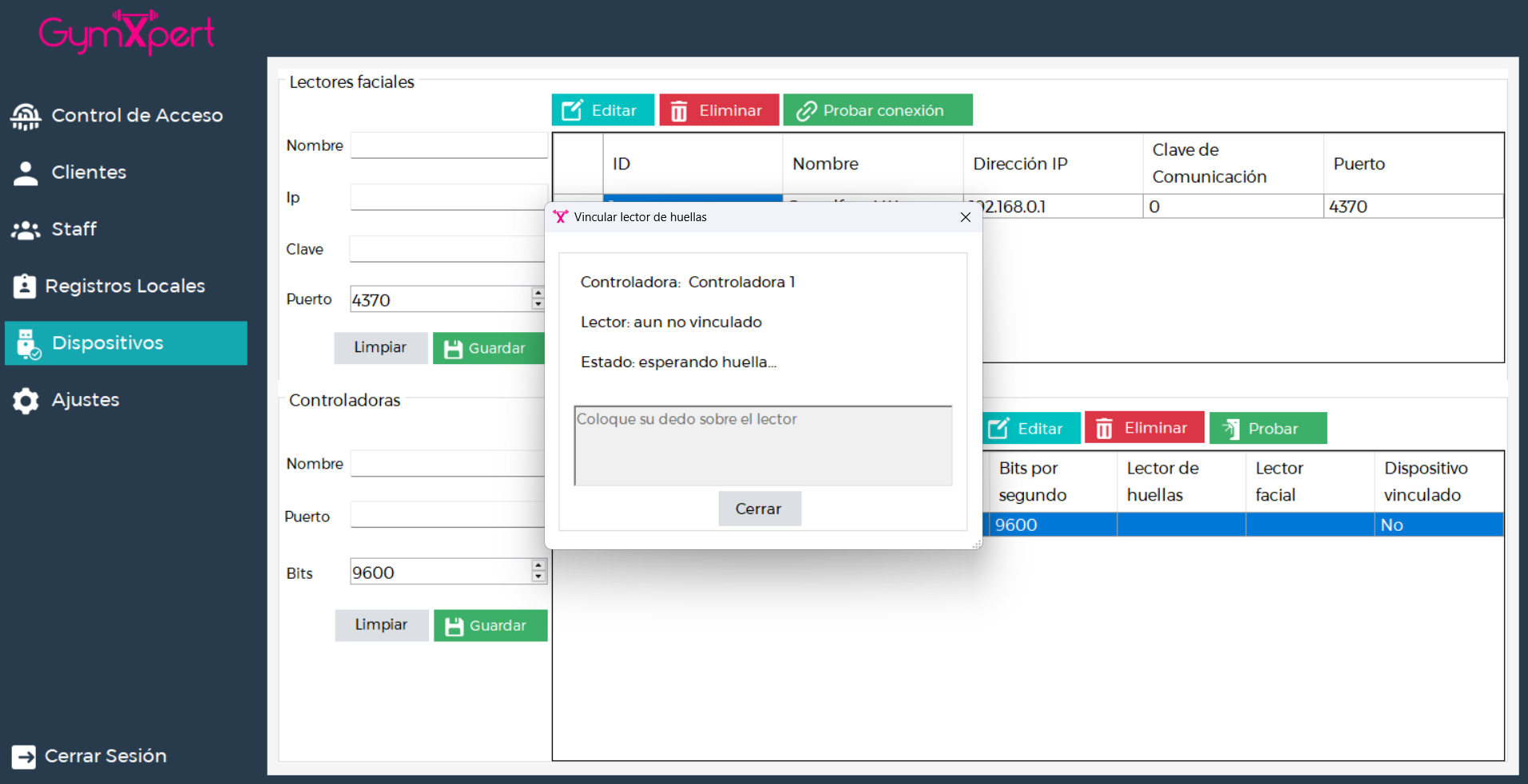 Para asociar el lector de huellas al torniquete, siga las siguientes instrucciones desde GymXpert Access Control: