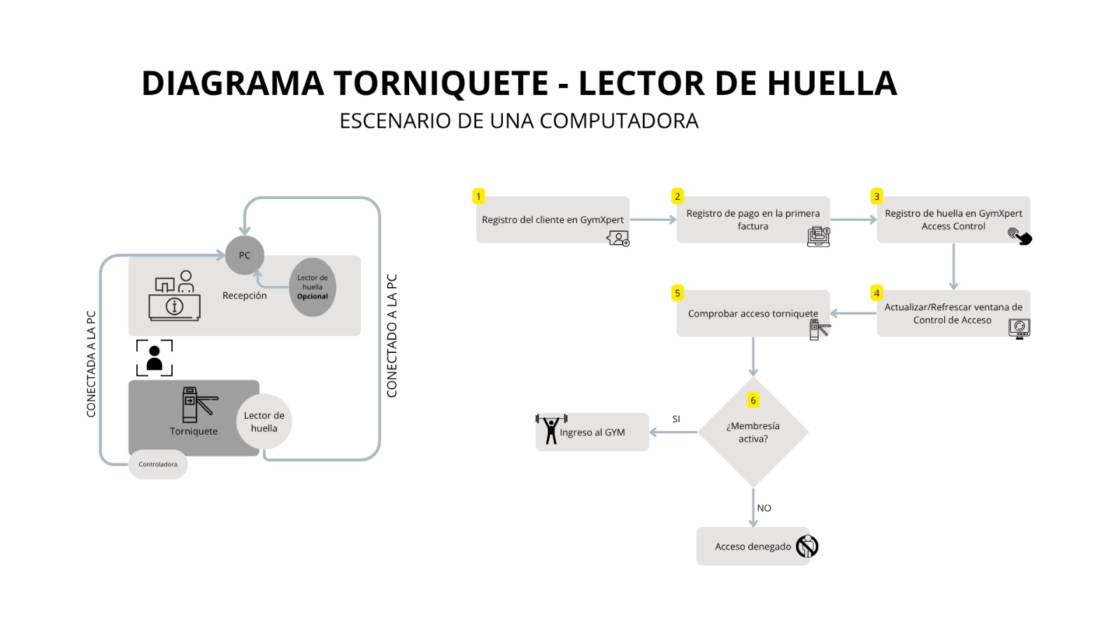 El cliente coloca su dedo en el lector y el sistema validará su huella en ese momento, permitiendo el acceso al gimnasio.