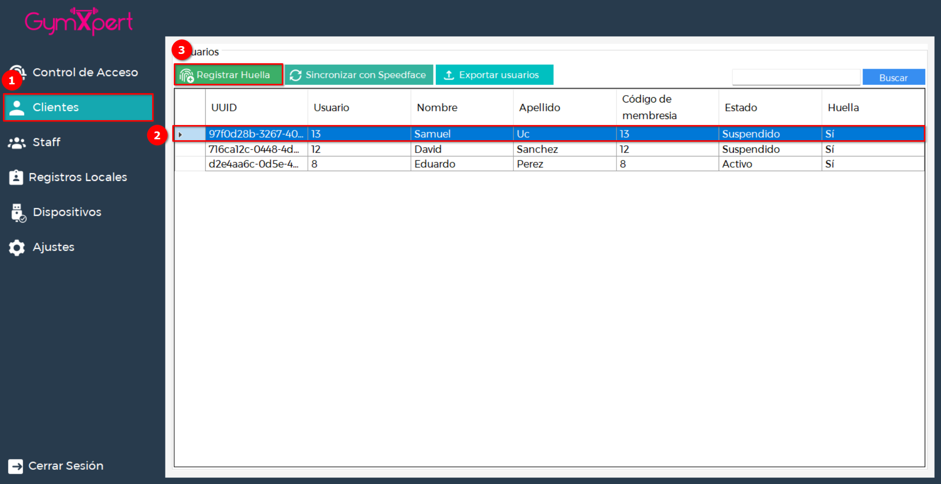 Desde GymXpert Access Control, diríjase a la sección Clientes.